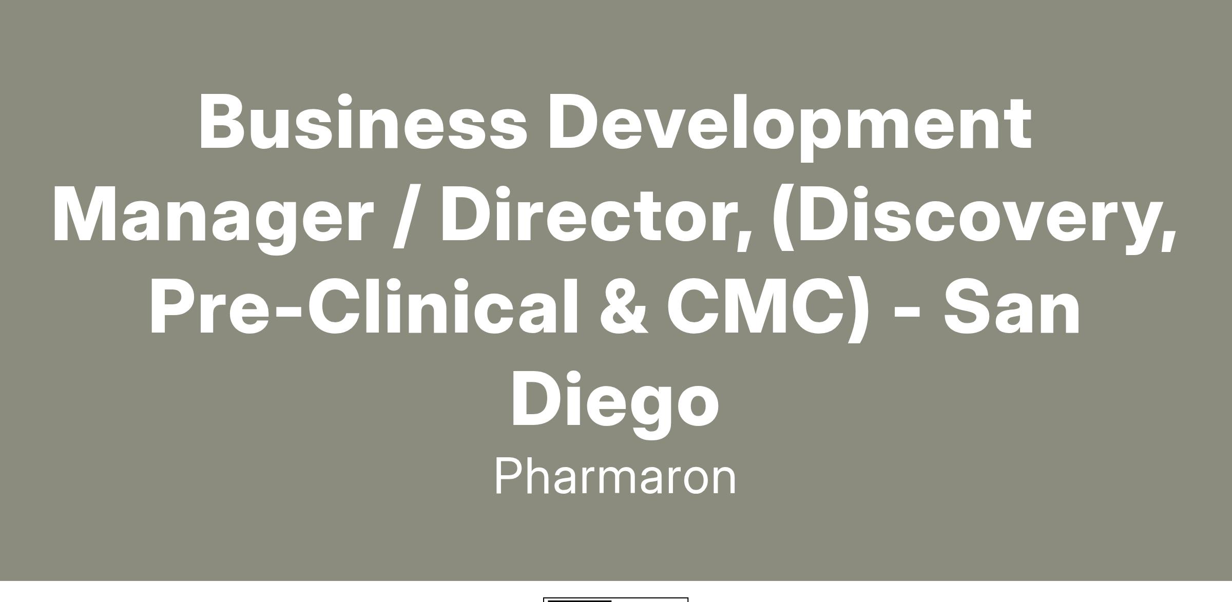 Business Development Manager / Director, (Discovery, Pre-Clinical & CMC) - San Diego
