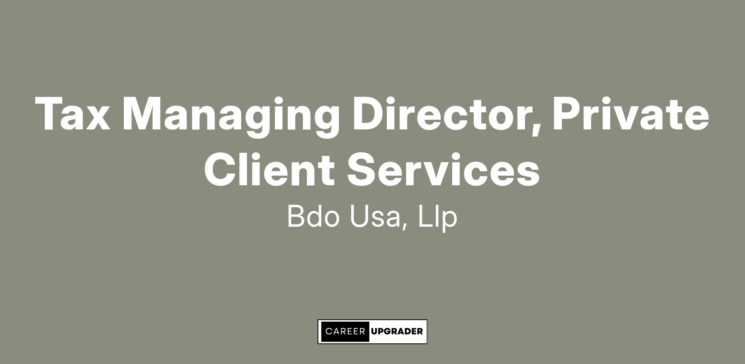 A Tax Managing Director, Private Client Services (PCS) is responsible for utilizing their educational background and professional experience as well as their communication, time management, leadership, technical, business development, and people skills to provide tax compliance and consulting services to our high net-worth clients. They are a critical member of the office/region leadership team.